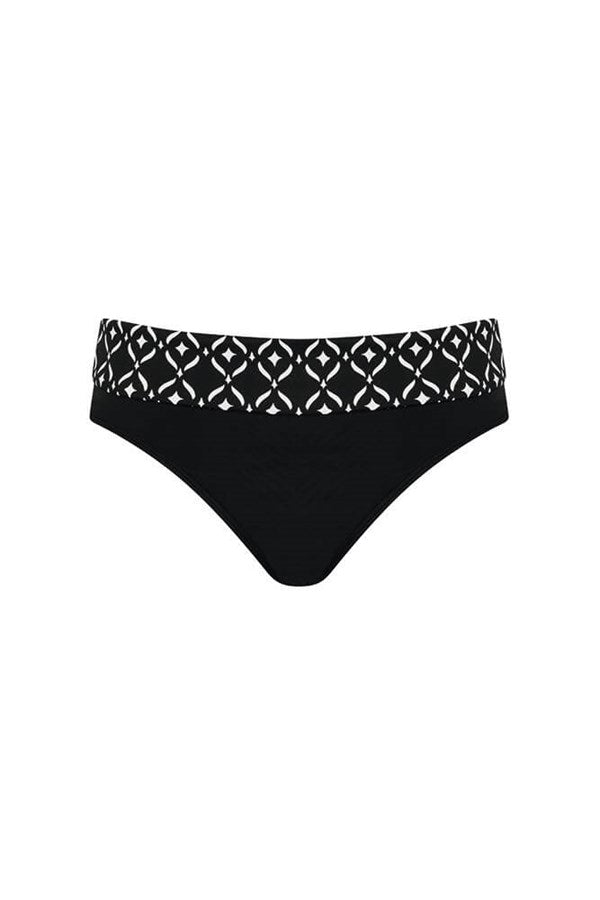 - Oriental black and white star high waist swim brief, which can be folded down to mid-height