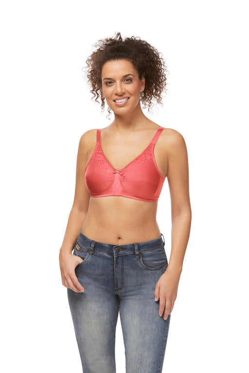 Nancy, our classic average-fit bra with a floral lace along the neckline